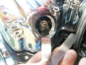 Grab your feeler gauge and check the clearance. The intake valve for this cam needs to be set at .004" so begin with this gauge. This one checks out at .004".